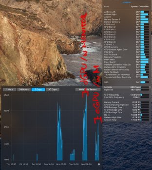 See the screenshots attached - I measured Heaven and compared each a day of work-usage history to each other. The later day using the eGPU with a similar workflow.