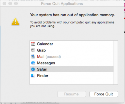 Look at the file "no memory.png"; there are only 5 apps running (+Finder) and the iMac has 16Gb RAM.