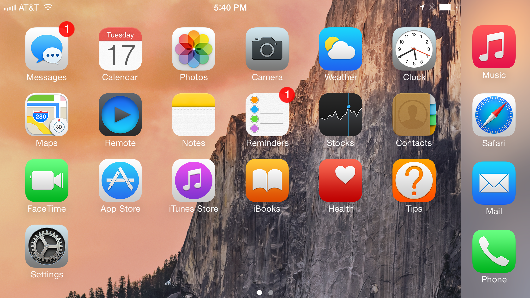 I have 8.1.3 on my my phone so I can't jailbreak, but I figured I'd share it here. Most of the icons are made out of vector tracings that I collected from iOS, and applied a gradient and shadow to look like Yosemite. Others, like Settings, I used the icons from the Mac app and tweaked it a bit to fit in the icon.