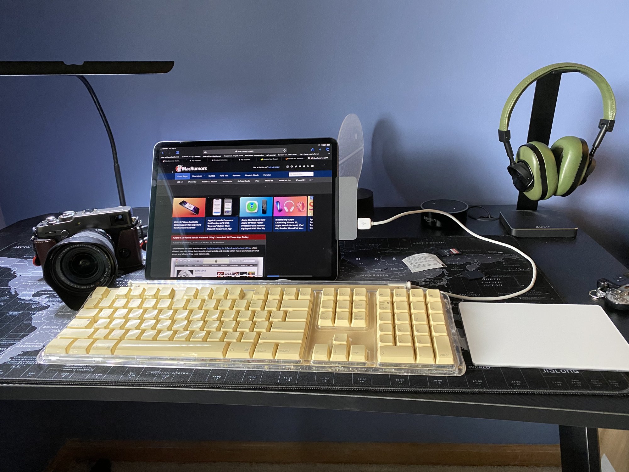 2018 iPad Pro, Apple Trackpad, ancient Apple Mac, mechanical keyboard (now turned yellow with age). I was amazed they all worked! Next I need to find a power supply form any old Apple translucent monitor