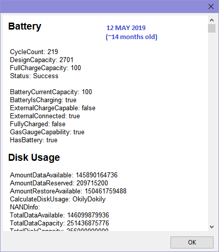 - Current full charge capacity: 2628 / 2716 (96.8% / 100%)