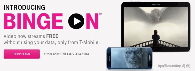 Launched in November, Binge On is a T-Mobile video service that allows T-Mobile subscribers to watch video from content partners without it counting against customer data plans. The catch is that it uses a proprietary data compression algorithm to stream the video in 480p. While Binge On can be disabled, using the feature requires partner video to be watched in 480p, which T-Mobile calls "DVD quality."