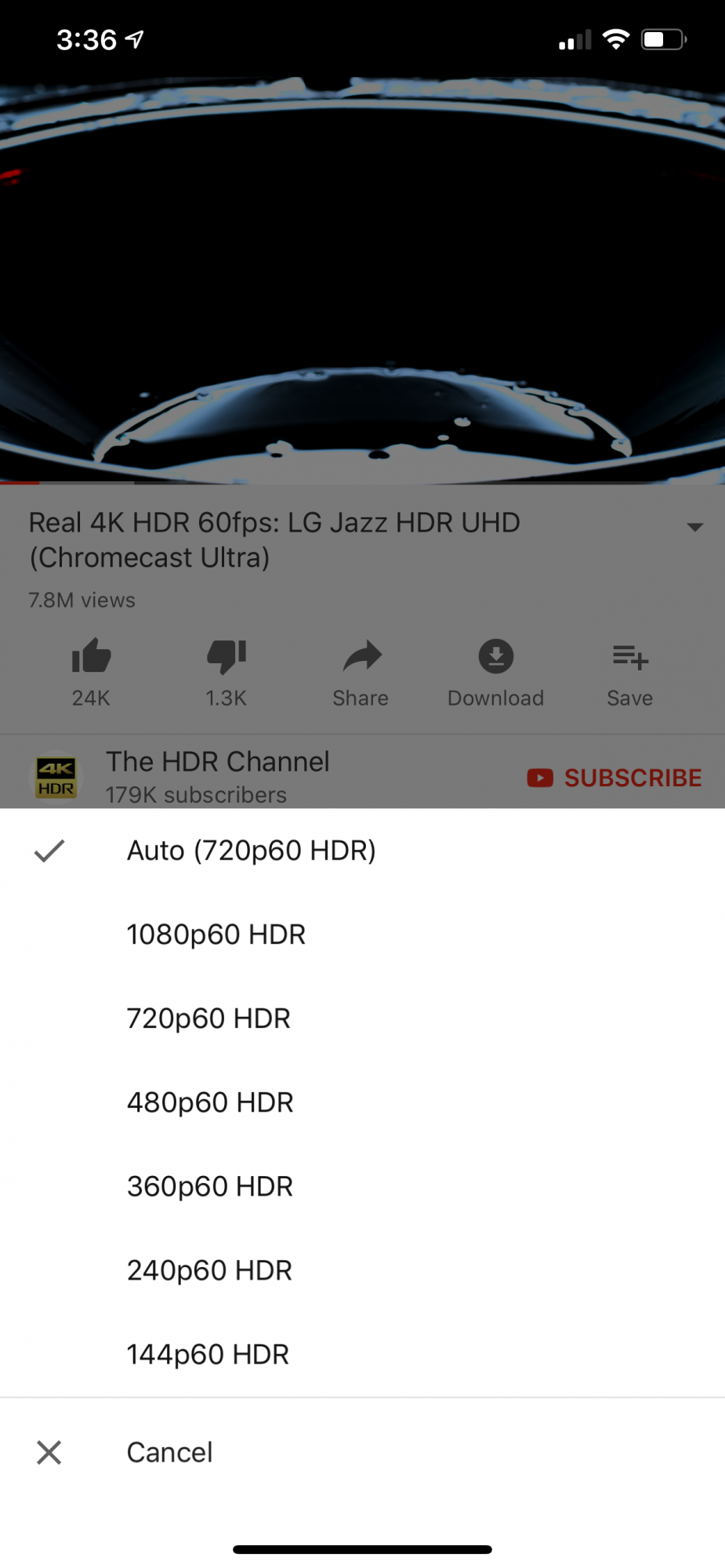 To check to see if you are watching YouTube videos at their highest quality, you can simply press the three dots on the top right of the video, and you should see "HDR" options listed on supported videos. HDR options are also only be available on devices released since 2017 that have OLED displays (so that excludes all iPad models and the iPhone 11 and iPhone XR).