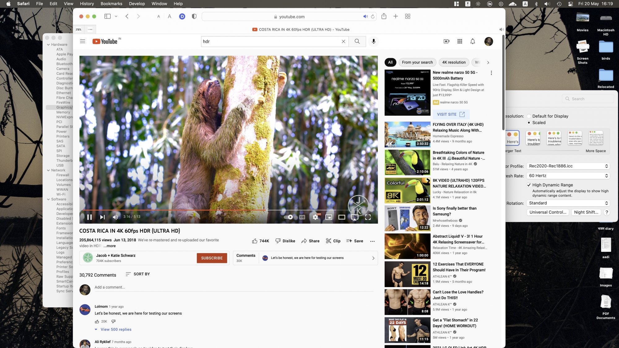 I changed the Colour Profile of my display to Display P3 and HDR now shows on Youtube in Safari!!