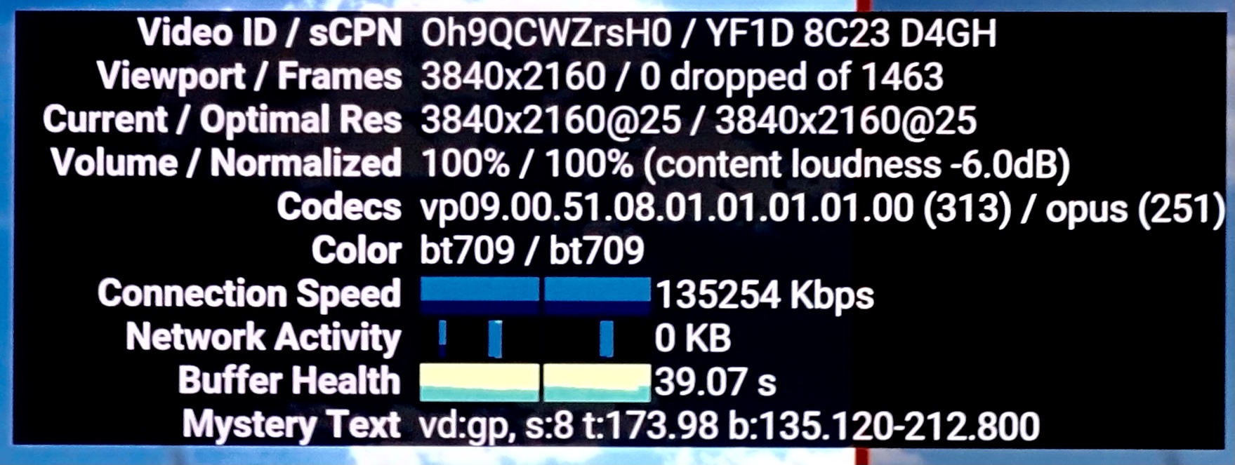 Not exactly accurate, as far as the older ATV 4K 1st gen goes anyway, and I’m talking strictly about regular YT, not YTTV. On my ATV 4K 1st gen some 4K programming is available, but no HDR programming. This is according to the so-called Nerd Stats menu feature. For example: