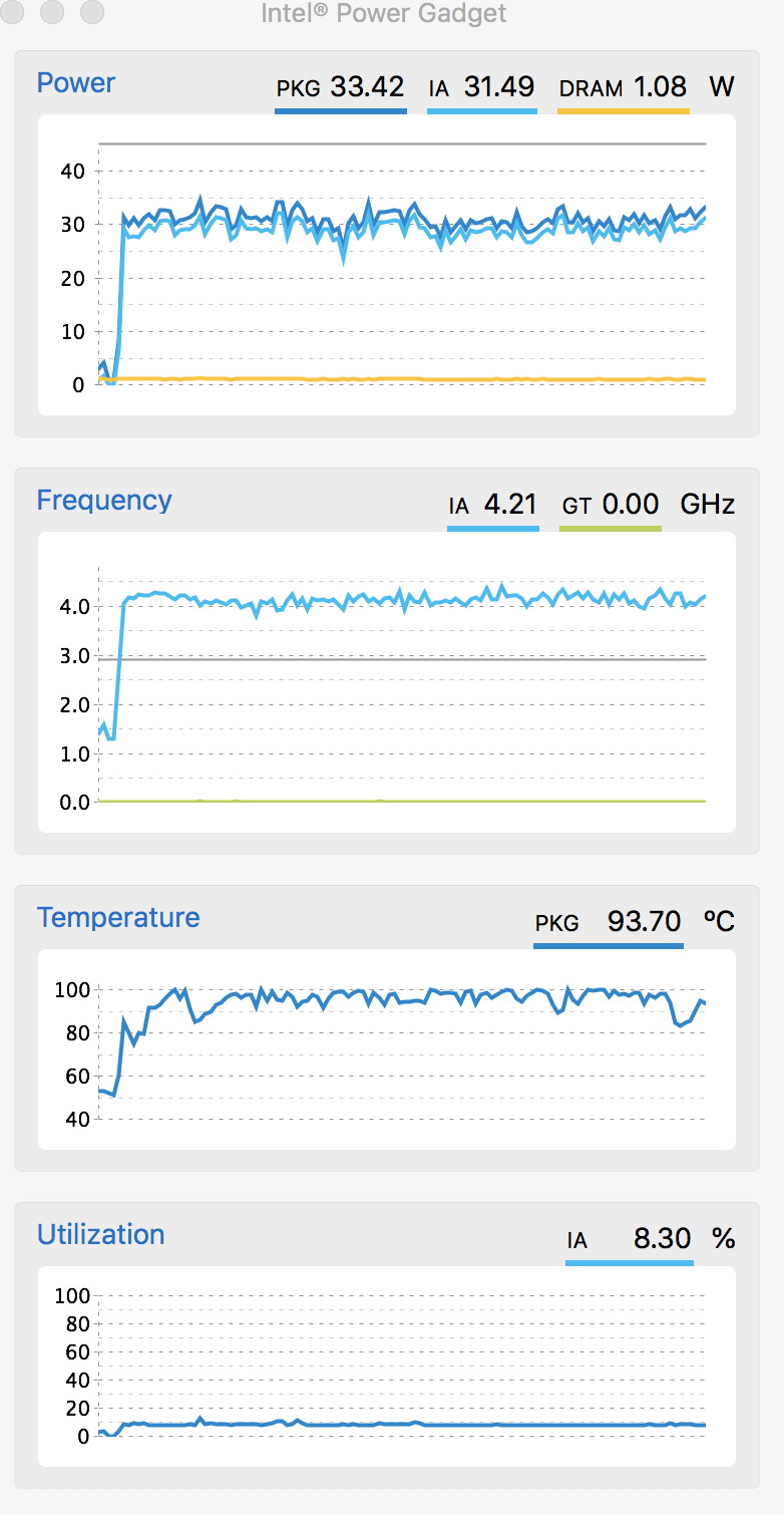 As soon as I saw that these Macs had been released with these new CPUs I started wondering what kind of cooling magic Apple might have worked to make it possible. The answer seems to be: none. The laws of physics are the laws of physics and if these chips run hot in 1"+ thick systems with massive heatsinks and fans, what chance do they have in something as thin as a MacBook Pro?