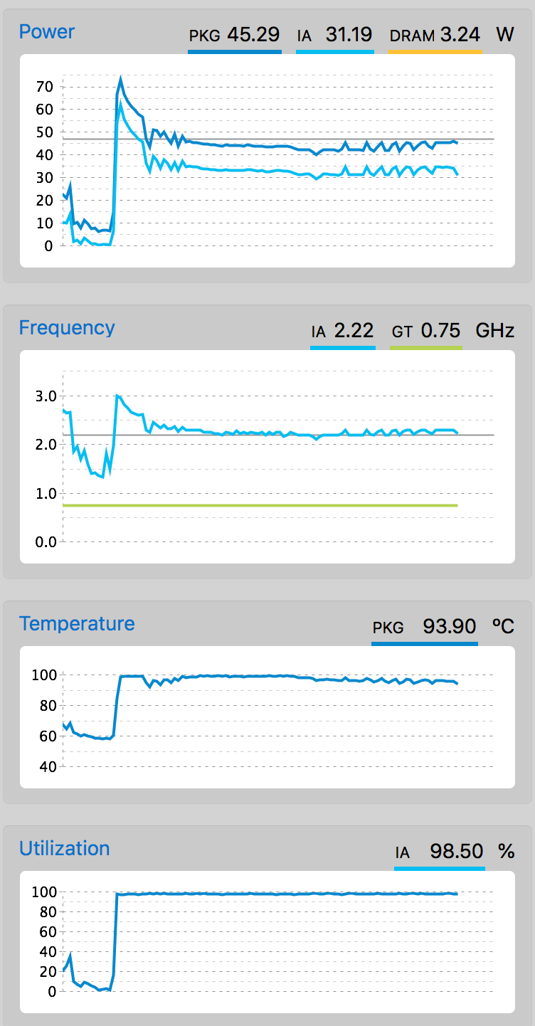 Not at all surprised. This isn’t just Apple. The entire 8th gen hex and quad mobile line from Intel is fraud, in my humble opinion. There isn’t a laptop on the market that can sustain the turbo clock speeds, from the 8750H all the way down to 8250U. Razer, Dell, Asus, Lenovo, MSI all suffer from thermal and power limits.